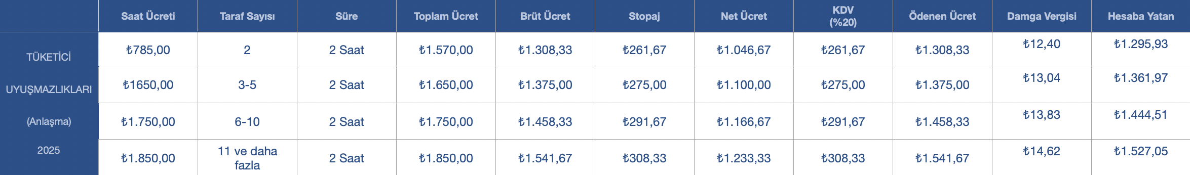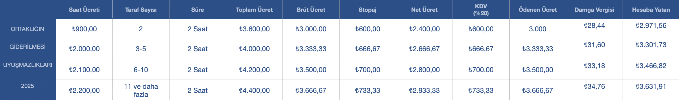 Ücret Dilimi | Oran | Arabuluculuk Ücreti |