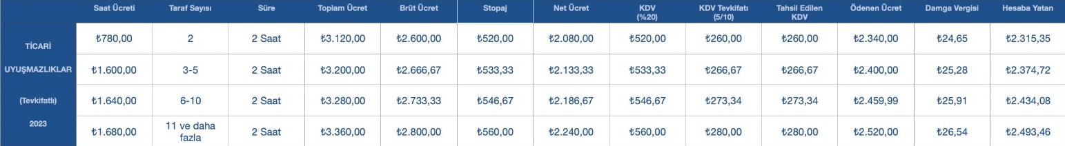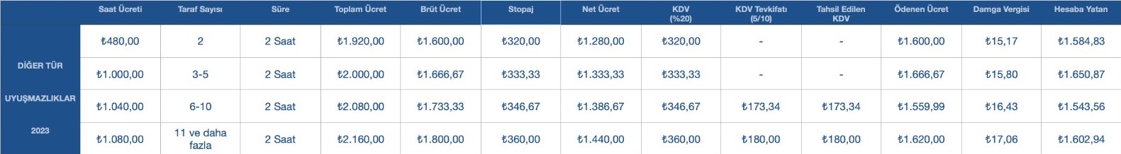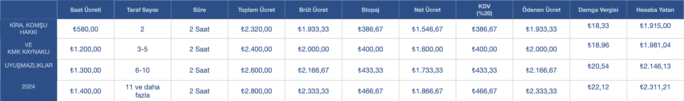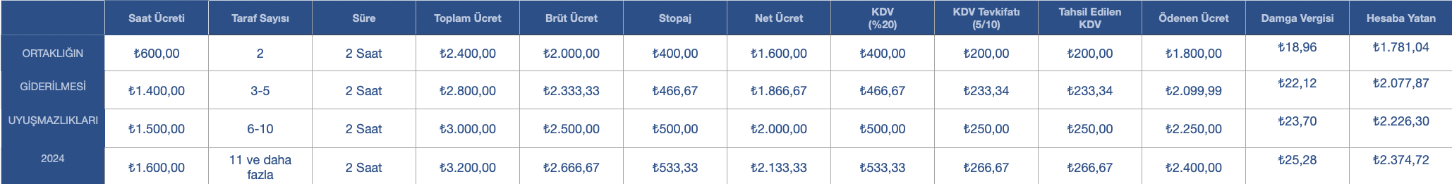 Konusu para olan veya para ile değerlendirilebilen hukuki uyuşmazlıkların arabuluculuk yoluyla çözüme kavuşturulmasının sağlanmasında arabulucuya ödenecek ücret 2023 ve 2024 tarifelerine göre hesaplanabilmektedir.